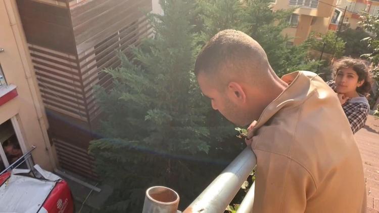 Hızlanan araç, demir korkulukları kırarak yaklaşık 20 metreden apartman boşluğuna düştü. Feci kazada sürücü Furkan Erdinç, hafif yaralandı.