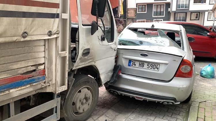 Kağıthane'de kayan kamyoneti durdurmak için kapısını açan sürücü, park halindeki otomobille kamyonet arasında sıkışarak yaralandı. Kamyonet 6 araca çarparak durdu. Bir kadın ve çocuğun ezilmekten son anda kurtulduğu kaza anı güvenlik kamerasına yansıdı.