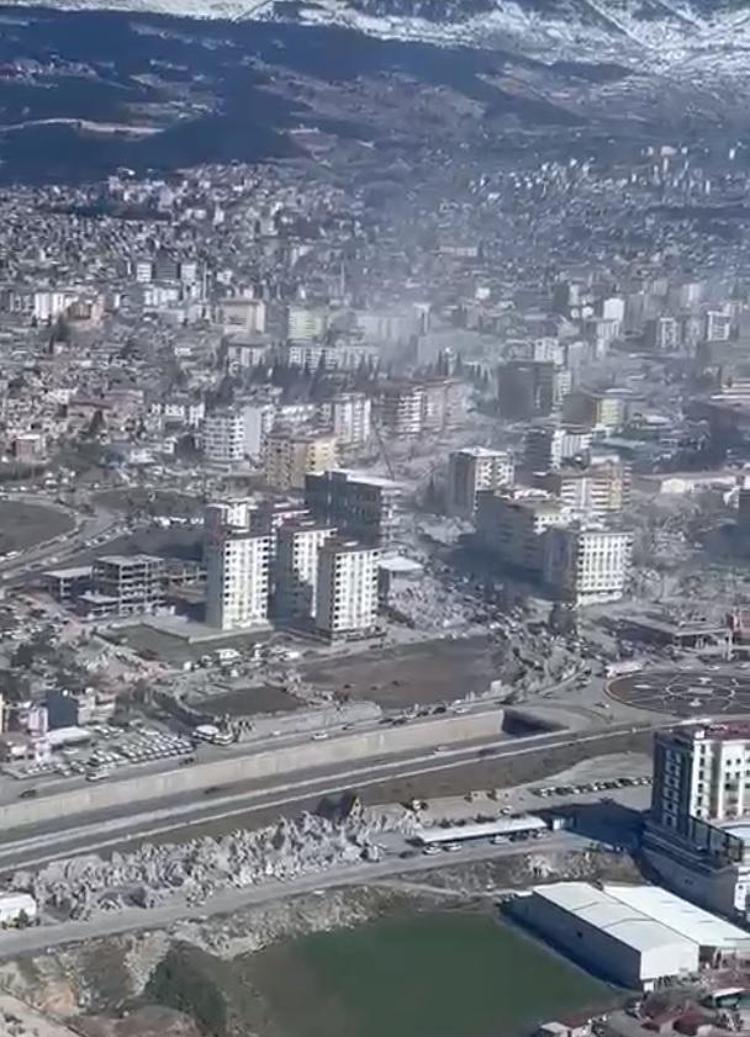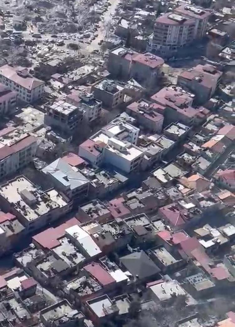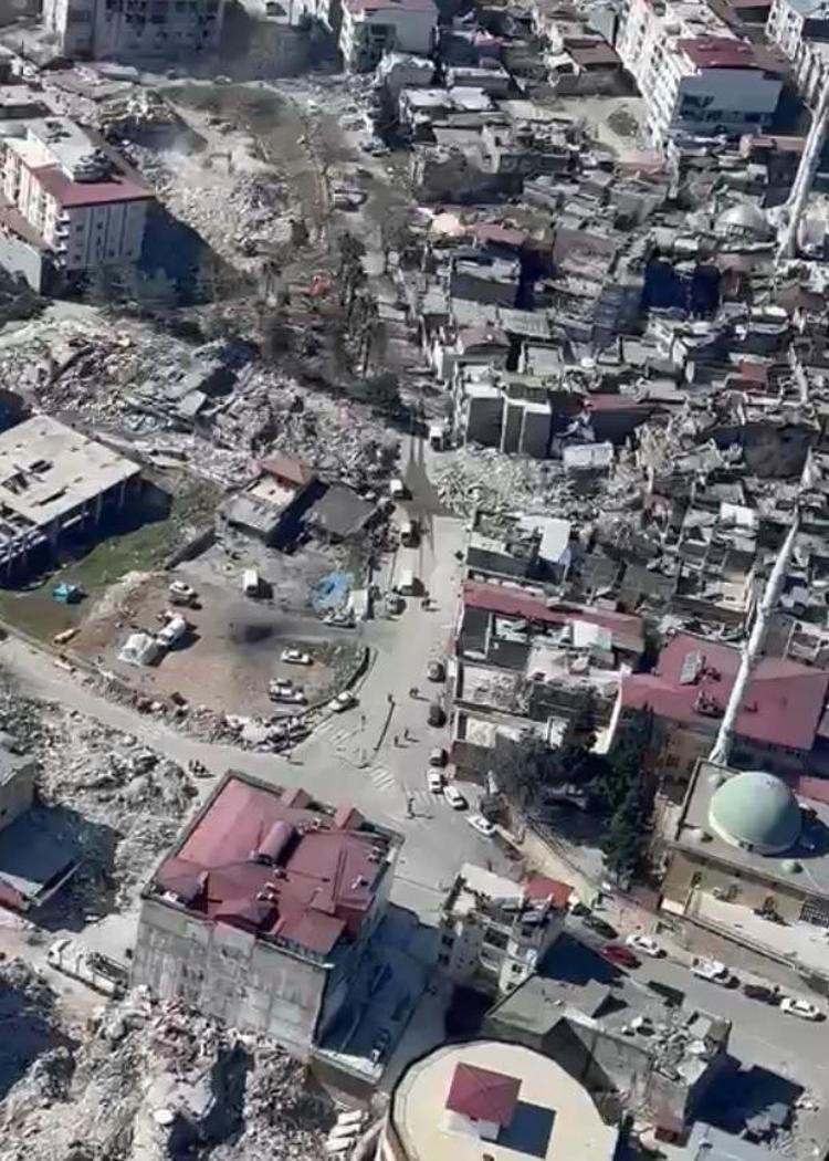 Kahramanmaraş’ta helikopterle havadan çekilen görüntüler, felaketin büyüklüğünü bir kez daha gözler önüne serdi. Şehrin bir bölümünde binalarda hasara rastlanılmazken, diğer bölümünde ise enkaz yığınları dikkati çekti.