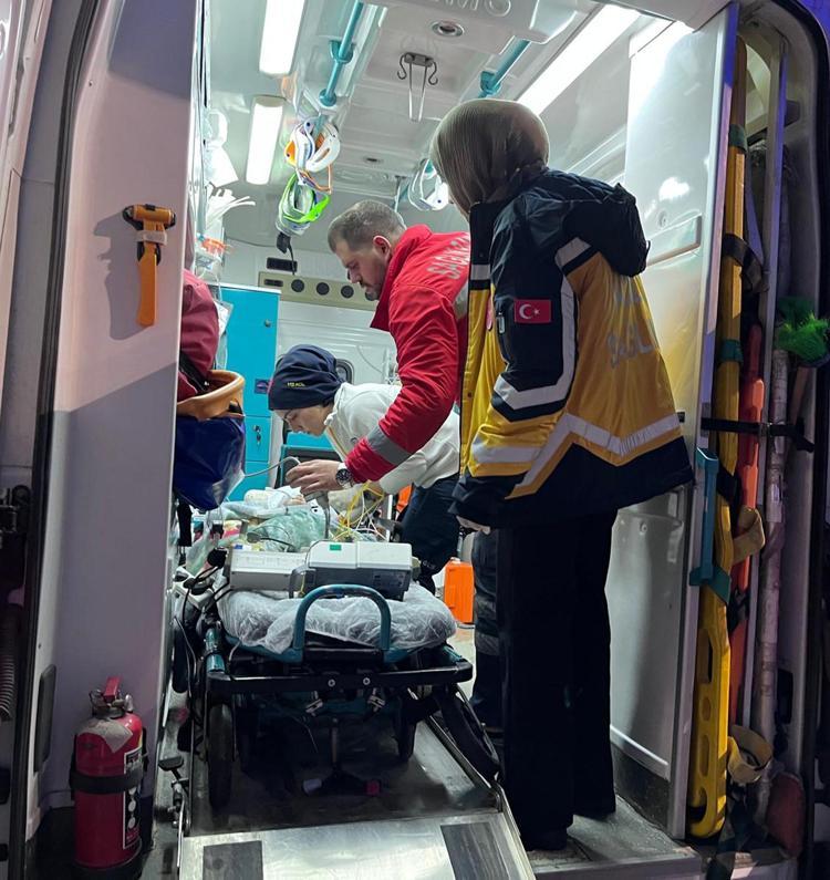 Ağrı’da Down sendromlu dünyaya gelen 5 aylık bebek kalp yetmezliği sorunu yaşayınca ambulans uçakla Ankara’ya nakledildi.