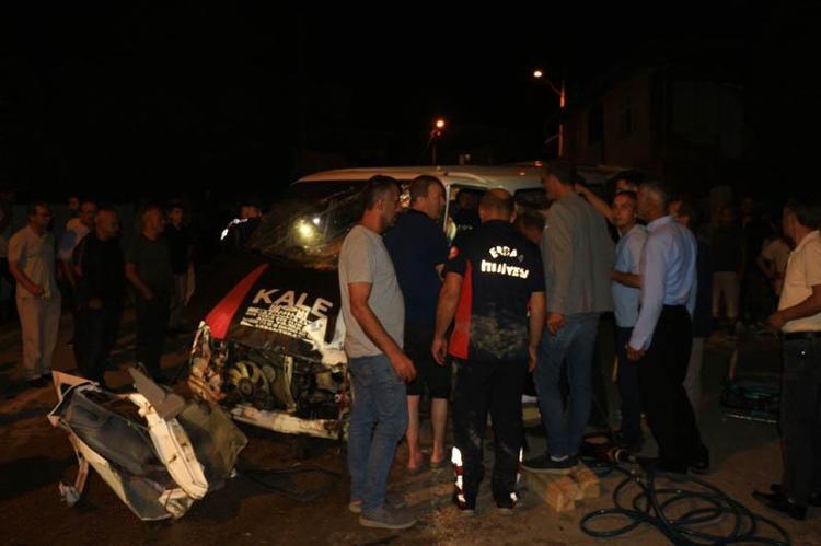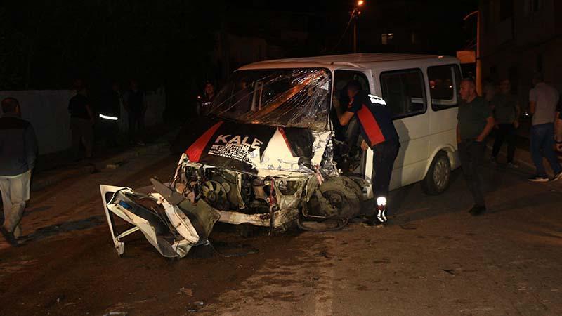 Kamyonete çarpan minibüsün şoförünü itfaiyeye kurtardı
