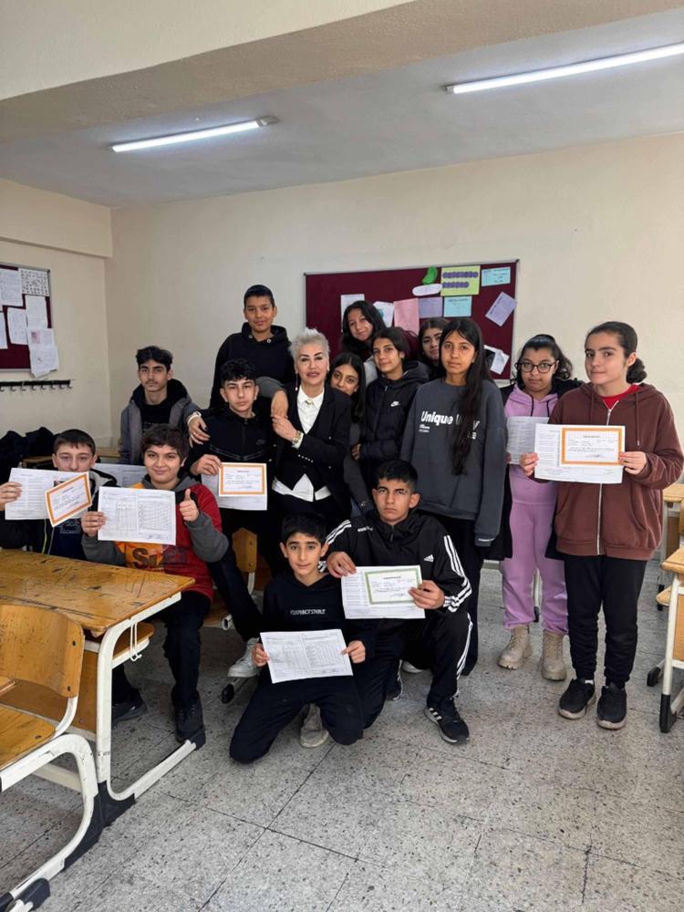 Aslanlar Ortaokulu 8'inci sınıf öğrencisi Esmanur Aslan (13) "Elvan öğretmenimiz hastalandıktan sonra okula gelmedi ve tüm okul bu duruma çok üzüldü. Çünkü kendisini çok seviyoruz. Elvan öğretmen, bizimle arkadaş gibi. Bizim de aklımıza Öğretmenler Günü'nde ona bir sürpriz yapmak geldi. Resim öğretmenimiz Gülben Özkan ve müdür yardımcımız Nazmiye Talay'ın desteği ile tüm öğrenciler olarak mektup yazdık ve bir sunum dosyası hazırladık. Öğretmenimize gönderdiğimizde çok sevindi. Öğretmenimizi motive etmek ve mutlu etmek istedik. Bizi okula ziyarete geldi, çok sevindik. Çünkü uzun süredir görmüyorduk. Görünce herkes çok heyecanlandı. Öğretmenimize sarılamadık, ama yine de çok mutlu olduk. Onu görmek iyi geldi" dedi.