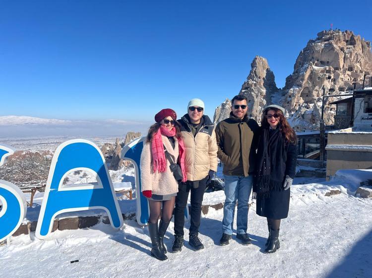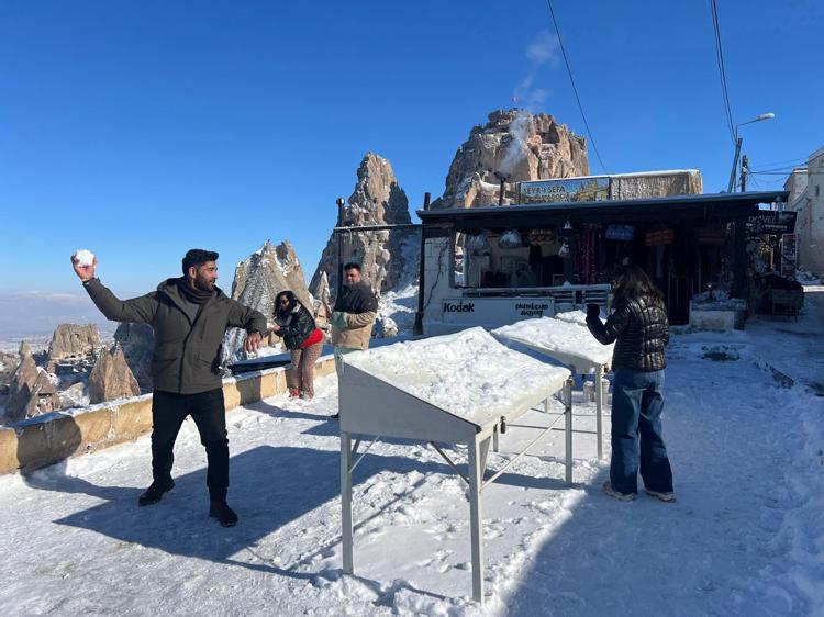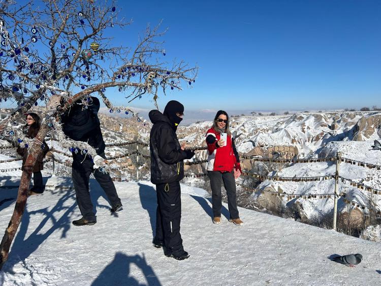 İstanbul’dan gelen Emine Karacaoğlu, "Buraya yılbaşı için eşimle birlikte geldik. Çok beğendim ama çok soğuk, zor şartlara rağmen geziyoruz. Peribacalarını gördük. Göreme ve Uçhisar'ı gezdik, kaleye çıktık. Herkese tavsiye ediyorum. Peribacaları karla daha güzel, kar her tarafı kaplıyor bembeyaz bu şekilde daha güzel" dedi.