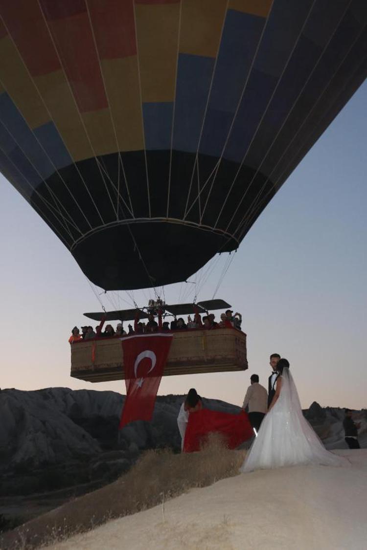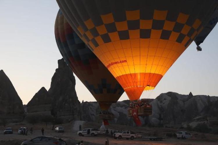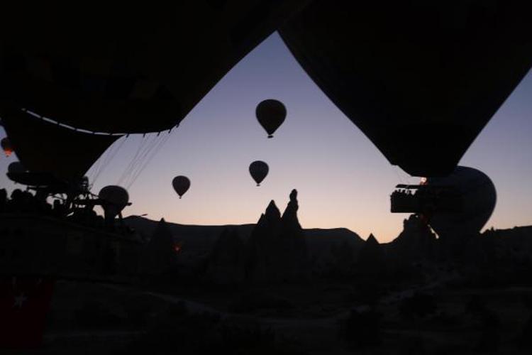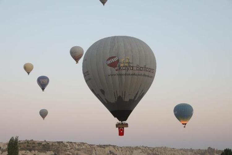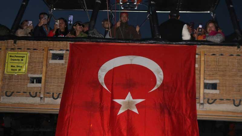 Kapadokya'da balonlar, Türk bayraklarıyla havalandı