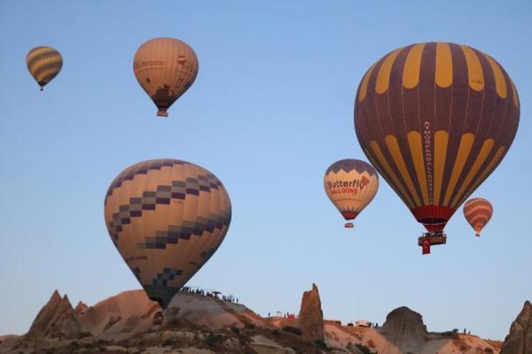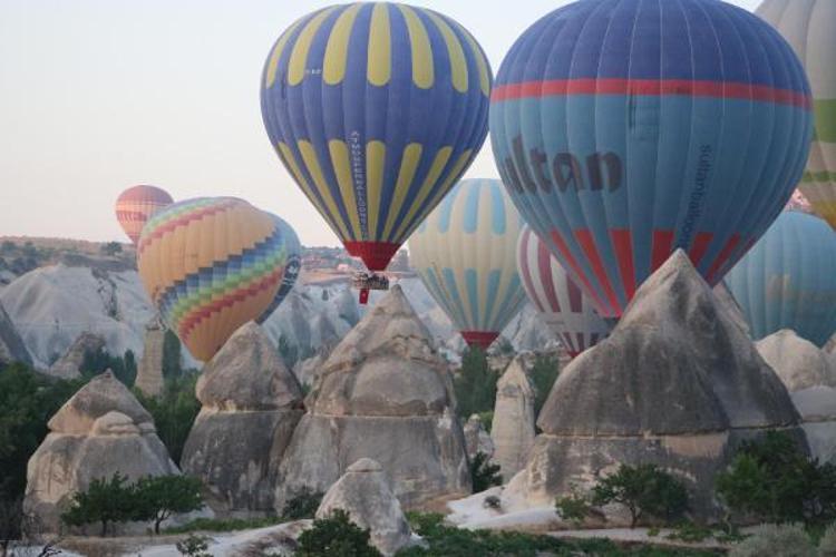 Sabah erken saatlerde havalanan hava balonları, bir süre Kapadokya semalarında dolaştı.