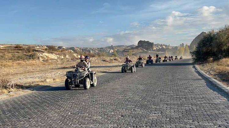 Sabah saatlerinde sıcak hava balon turlarına katılarak metrelerce yükseklikten Kapadokya'yı kuş bakışı izleme fırsatı bulan turistler, gün içinde de vadilerde at ve ATV araçları ile düzenlenen turlarla doğa gezisi yapıyor.