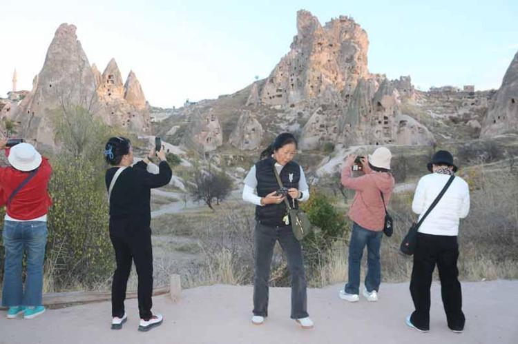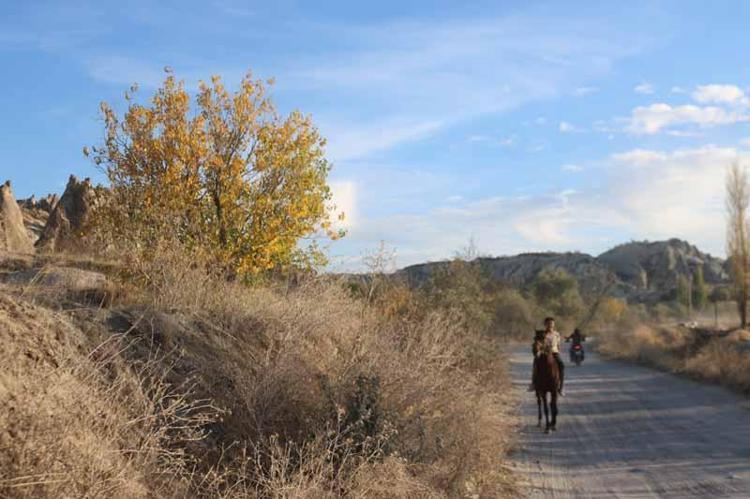 Her mevsimin farklı yaşandığı Kapadokya, sonbaharda da ziyaretçi akınına uğruyor. Vadi içlerinde, yaprakları kızıl ve sarıya bürünen meyve ağaçlarıyla peribacalarının renk uyumu, seyirlik görüntüler ortaya çıkardı. Bölgeyi ziyaret eden yerli ve yabancı turistler, manzara eşliğinde ağaçların arasında fotoğraf çektirdi.