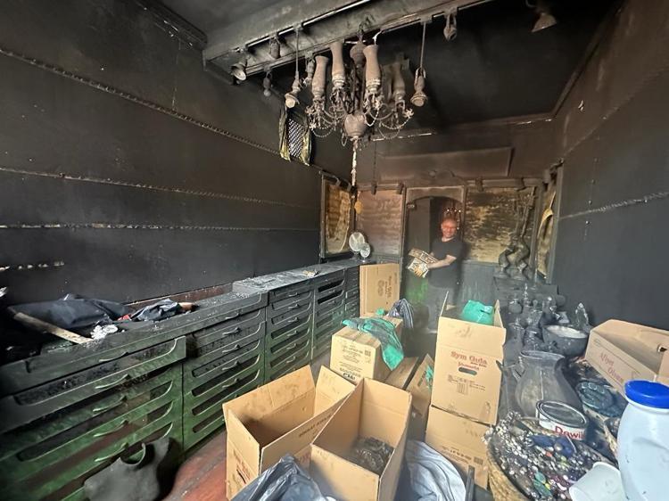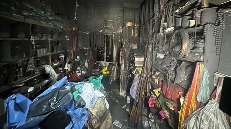 Yangının verdiği hasar, gündüz vakti görüntülendi. Süs eşyası ve çanta üretimi yapan dükkanda çıkan yangın hasara neden oldu. Dükkanın odalarında bulunan eşyaların büyük bir bölümünün kül olduğu görüldü.