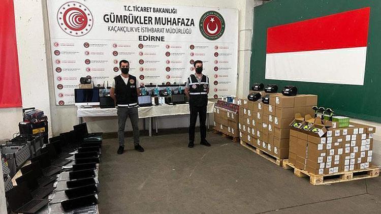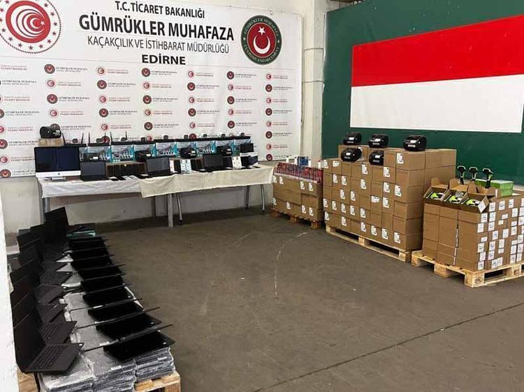 Edirne Gümrük Muhafaza Kaçakçılık ve İstihbarat Müdürlüğü ekipleri, Kapıkule ve Hamzabeyli sınır kapılarında 3 ayrı kaçakçılık operasyonu düzenledi. Kapıkule Sınır Kapısı'nda, yurda giriş yapmak üzere gelen TIR, şüpheli görülerek 'kırmızı hatta' aranmaya alındı. Ekipler, yaptıkları aramada, çeşitli eşyalarla doldurulan dorsede, faturasız ve belgesiz 228 dizüstü bilgisayar, 3 masaüstü bilgisayar, 150 barkod yazıcı, 150 barkod okuyucu, 20 wifi ve 4 kameralı kamera sistemi, 245 şarj adaptörü, 7 telsiz ve ekipmanı, 66 çeşitli eşya ele geçirildi.