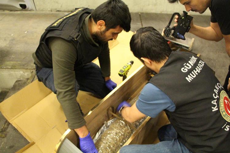 Kapıkule Sınır Kapısı'ndan Türkiye'ye giriş yapmak için gelen mobilya yüklü minibüs, şüphe üzerine X-Ray taramasına sevk edildi. X-Ray taramasında şüpheli yoğunluk tespit edilen minibüste narkotik köpeği Jeff ile detaylı arama yapıldı.