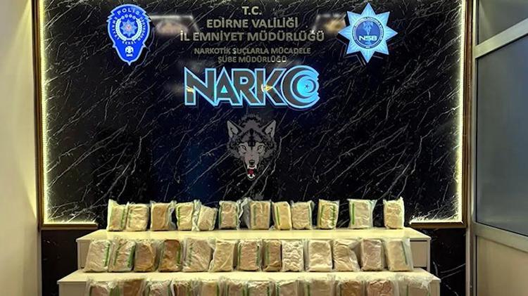 Edirne’de Kapıkule Sınır Kapısı'ndan yurda giriş yapmak üzere gelen TIR’da gerçekleştirilen aramada 66 kilo 400 gram sentetik uyuşturucu hammaddesi ele geçirilirken, gözaltına alınan şoför U.A., çıkarıldığı mahkemece tutuklandı.