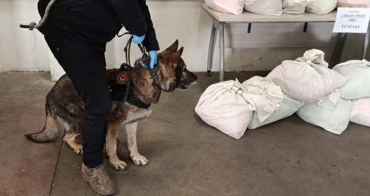 Edirne'den Bulgaristan'a açılan Kapıkule Sınır Kapısı'na gelen TIR'da, dedektör köpek 'Bodri' ile yapılan aramada 2 milyon 500 bin uyuşturucu hap ile 16 kilo esrar ele geçirildi.