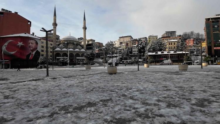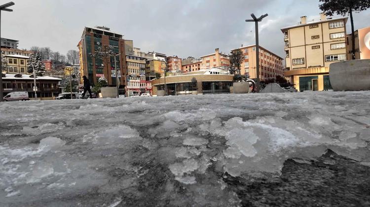 Doğu Karadeniz'de 2 gündür etkili olan kar yağışı, Rize'de hayatı olumsuz etkiledi. Gündüz karın gece ise dondurucu havanın hakim olduğu kent merkezinde cadde ve bazı sokaklar buz tuttu.
