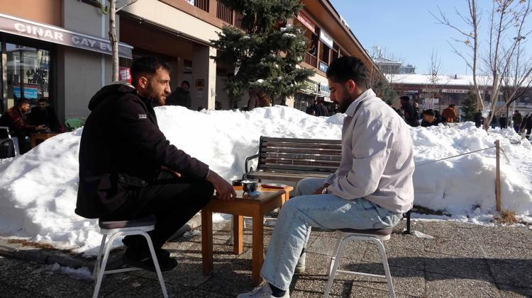 Van'ın Erciş ilçesinde kar kalınlığı yer yer 80 santimetreye ulaşırken; esnaf, kar kütlelerinin arasında masa kurup, çay içerek sohbet etti.