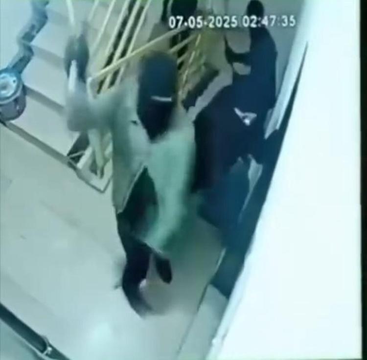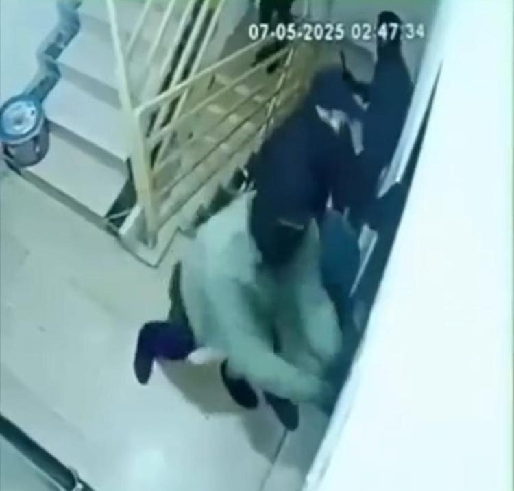 Mardin’in Kızıltepe ilçesinde kar maskeli 4 şüpheli, husumetlilerine ait bir dairenin kapısını çekiç, balta ve levyelerle parçalayıp kaçtı. Olay anı, güvenlik kamerasına yansıdı.