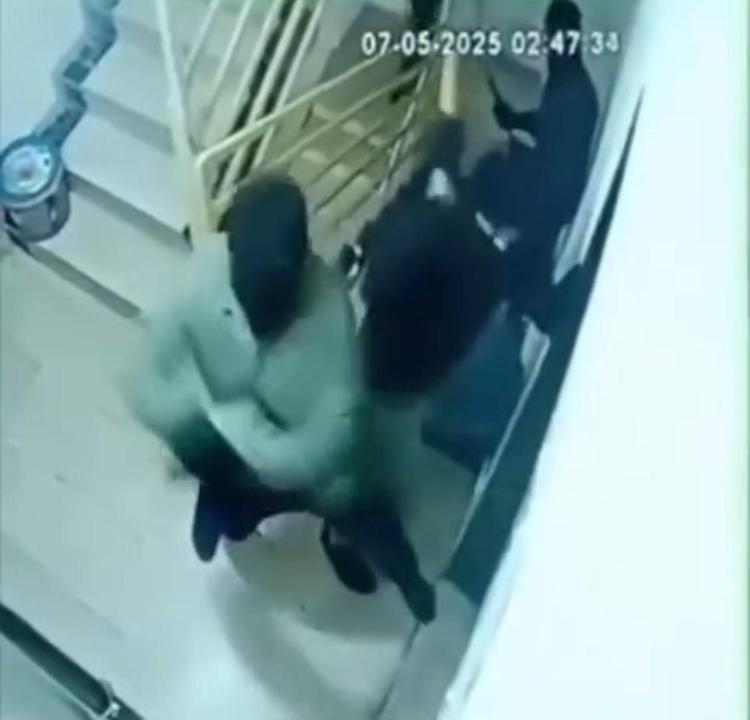 Öte yandan olay anı, apartmandaki güvenlik kamerasına yansıdı.