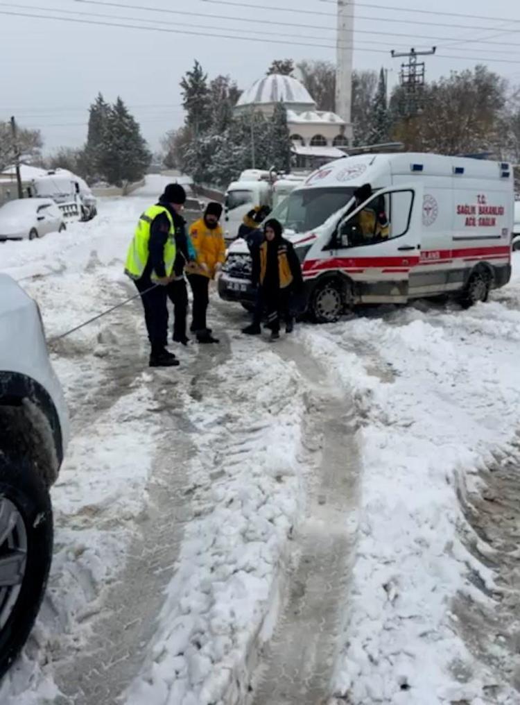 Besni ilçesi Suvarlı beldesinde oturan diyaliz hastaları Nazmiye Y. ve Fatma T., fenalaşınca yakınları durumu 112 Acil Sağlık Merkezi'ne bildirdi. İhbar üzerine adrese gelen sağlık görevlileri, 2 hastayı ambulansla aldı. Dönüş yolunda ambulans yoğun kar yağışı nedeniyle kara saplandı. Durumun bildirilmesi üzerine harekete geçen UMKE ekipleri, paletli araçla Fatma T. ile Nazmiye Y.'yi alıp, Besni Devlet Hastanesi'ne kaldırdı.