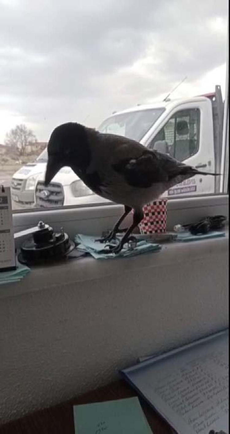 Garajdaki ofislerin kapılarını açık bıraktıklarında karganın gelip kalem, anahtar gibi eşyaları aldığını söyleyen Yılgın, “Öğle yemeğine gittiğimizde kapı açık olduğunda ne bulursa alıp gidiyor.