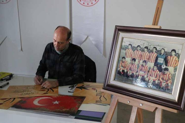 Kayserispor dahil 5 farklı takımda forma giyen Mustafa Türkmen (58), koronavirüs pandemisinde geçirdiği karaciğer nakli sonrası çocukluktan beri ilgi duyduğu kaligrafi sanatına yöneldi. Kültür ve Turizm Bakanlığı Somut Olmayan Kültürel Miras Taşıyıcısı kaligrafi sanatçısı olan Türkmen, ‘Spordan satıra, mürekkepli hayat temalı’ ilk kişisel sergisini açtı.