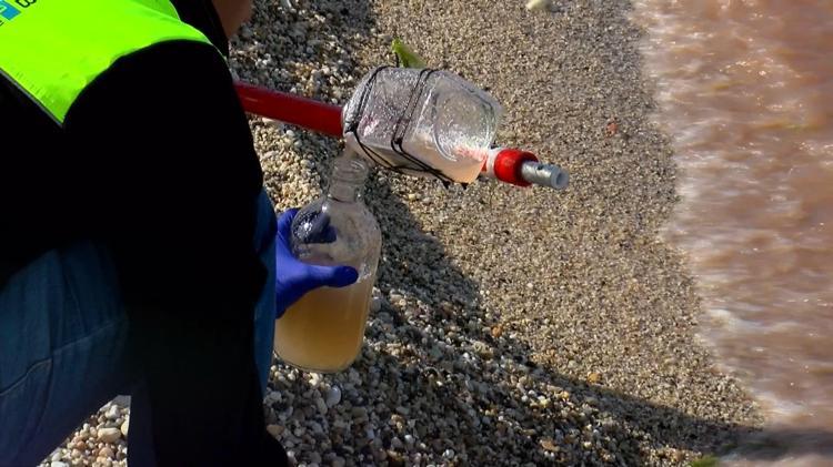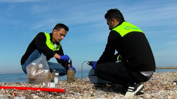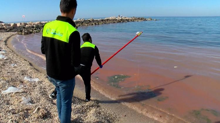 İhbar üzerine Çevre ve Şehircilik Bakanlığı İstanbul İl Müdürlüğü'ne bağlı çevre mühendisleri ve laboratuvar ekipleri geldi. Ekipler, denizden numuneler aldı.