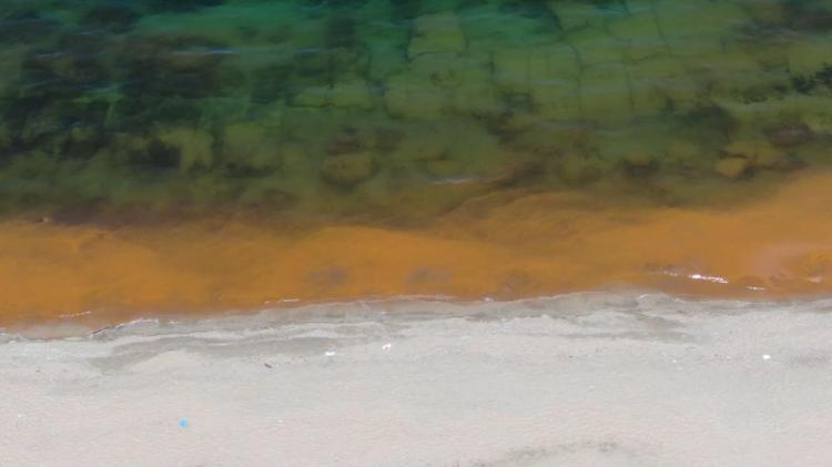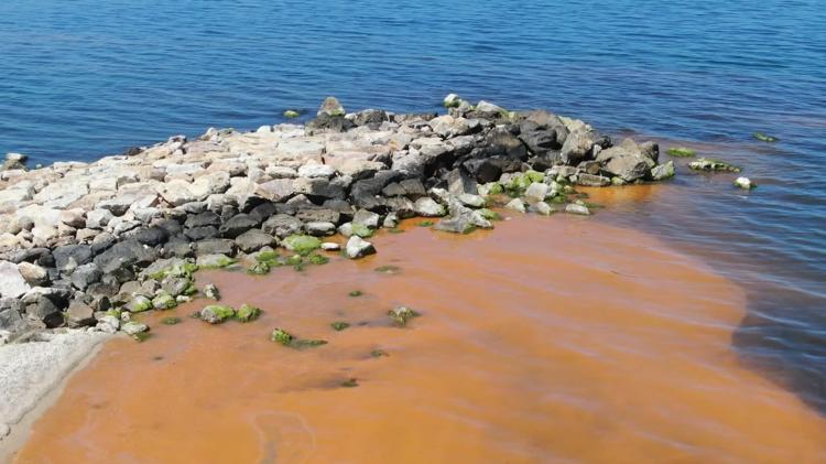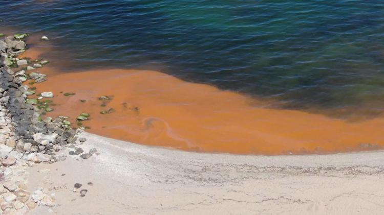 Karaburun Sahilinde, deniz suyunun rengi bölüm bölüm turuncu ve kızıla döndü. Çevredekiler denize boya döküldüğünü sanarak durumu yetkililere bildirdi.