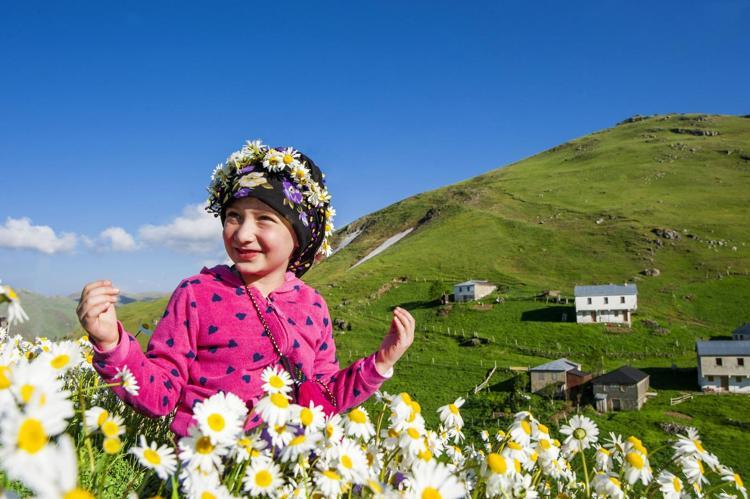 Doğu Karadeniz'de haziran ayı ile birlikte sıcaklıklar artarken bölge halkı da küçük ve büyükbaş hayvanları ile yaylalara göç etti. Karadeniz yaylalarında açan kır papatyalarını toplayan yöresel kıyafetli çocuklar rengârenk görüntüler oluşturdu. İnan KALYONCU/TRABZON, (DHA)