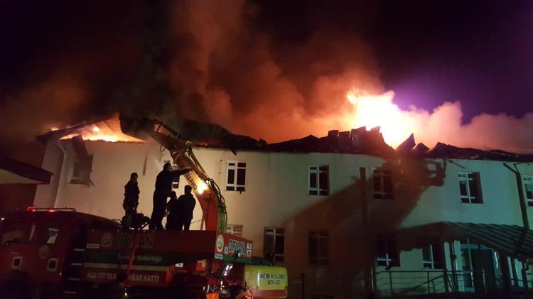 Karaman'da, Sarıveliler Devlet Hastanesi'nin çatısı yandı