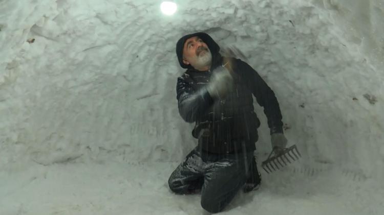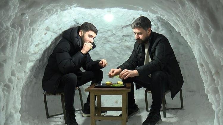 Muş'ta çay ocağı işleten Yılmaz Alak, kardan mekan yapıp çay, kahve ve sıcak süt satmaya başladı. Kardan yapıya 'Otantik İglo Cafe Muş' adını veren Alak, burada müşterilerine yoğurduğu çiğ köfteyi de ikram ediyor.