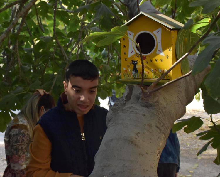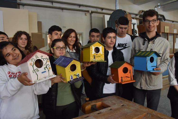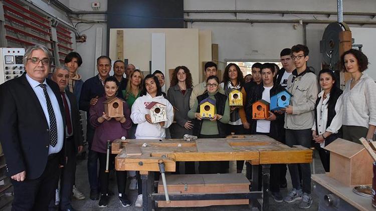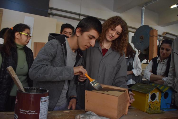 İzmir'in Bornova ilçesindeki Mimar Sinan Mesleki ve Teknik Anadolu Lisesi öğrencileri kardeş okullarında eğitim gören özel öğrencilerle birlikte kuş yuvaları hazırlayıp ağaçlara astı. Atölyede birlikte tahta kesip boyayan öğrenciler, üretime katılmanın mutluluğunu yaşadı.