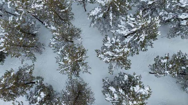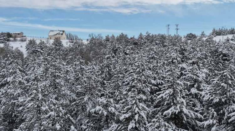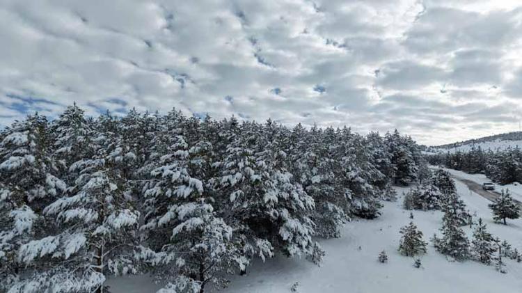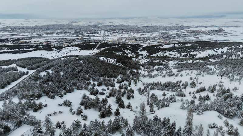 Sivas'ta kent merkezine hakim bir noktada bulunan ve çam ağaçlarının yoğunlukta olduğu Kardeşler Ormanı'nda kar yağışı ile ortaya çıkan manzara havadan görüntülendi.
