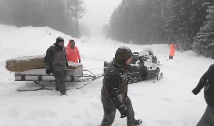 Bursa'da Doğa Koruma ve Milli Parklar personeli, kış şartlarında yiyecek bulmakta zorlanan yaban hayvanları için, karla kaplı Uludağ'a, 500 kilo buğday ve mısır ile 6 balya ot bıraktı.