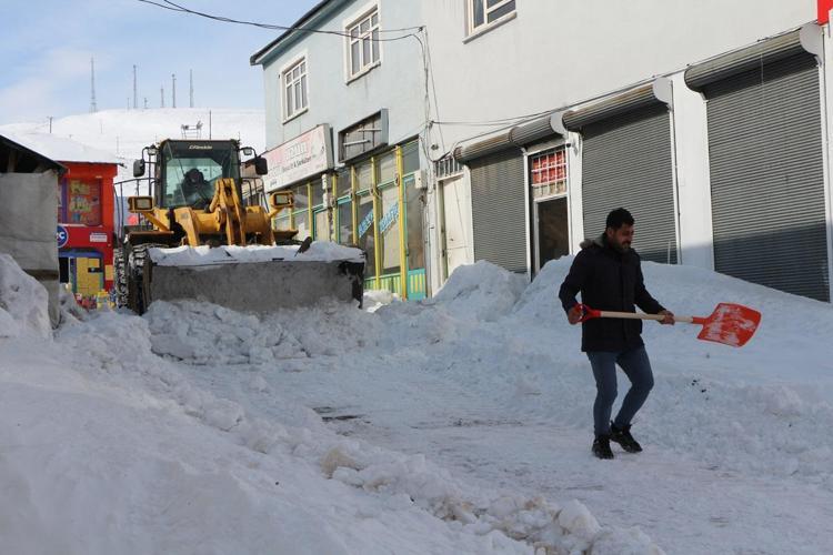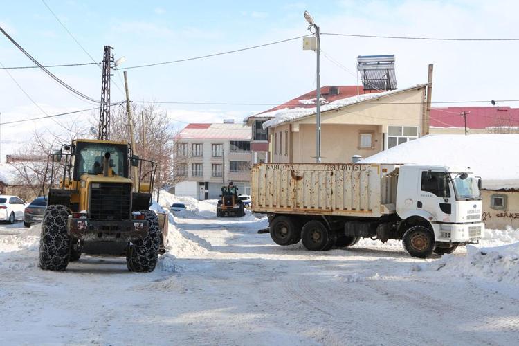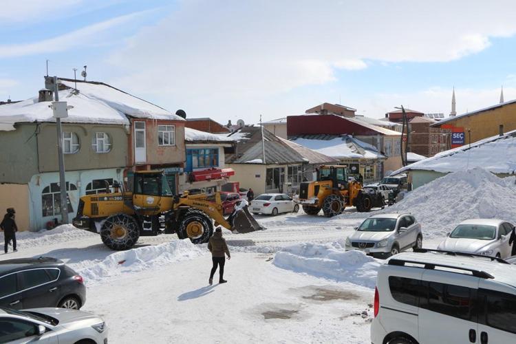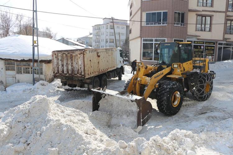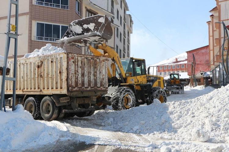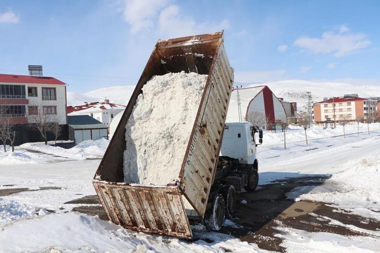Karlıova'da biriken kar, kamyonlarla ilçe dışına taşınıyor