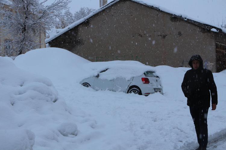 Bingölün Karlıova ilçesinde kar kalınlığı yer yer 2 metreyi buldu. Park halindeki araçlar kar altında kalırken, ulaşımda aksamalar yaşandı.