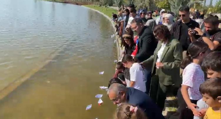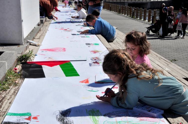 Etkinliğe katılan çocuklardan Şiyan Barış Aydın ise "Filistin'den gelmek isteyen misafirlerimizi ülkemize almalıyız, onları davet etmeliyiz. Savaşa hayır, barışa evet" dedi.