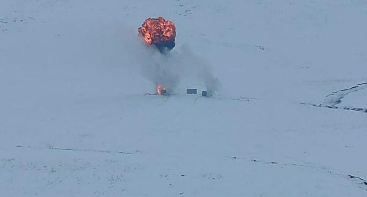 Karla kaplı zemin üzerinde ilerleyen askerler, binaya patlayıcı döşeyerek aldı. Kontrollü olarak patlatılan bina ile düşmanın irtibatını kesen komandolar, sızma faaliyetini başarıyla tamamladı.Kars / Merkez - Volkan KARABAĞ