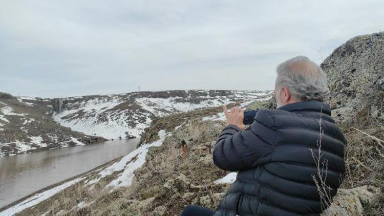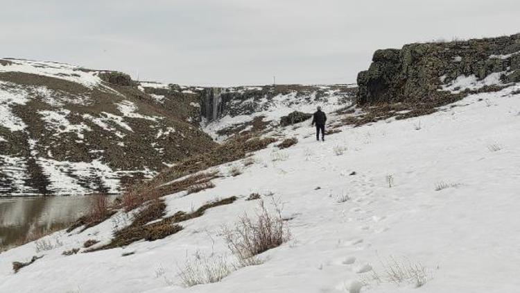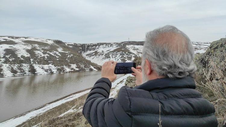 Bölgedeki güzelliği görmek için 2 kilometre yürüdüklerini söyleyen Okan Avşar, “Kars Baraj Göleti'nin çözülen buzları doğal bir şelale oluşturmuş.