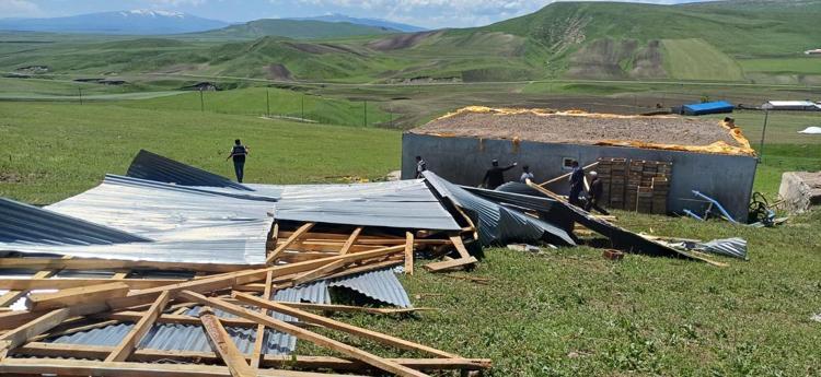 Kars'taki fırtınada 8 ev ve 3 ahırın çatısı uçtu