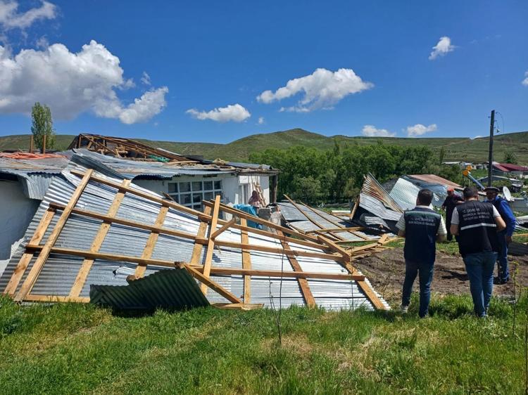 Merkez Başkaya ve Aydınalan köylerinde başlayan sağanak ve dolu, kısa sürede yerini şiddetli rüzgarlara bıraktı. Rüzgar sebebiyle Başkaya ile Aydınalan köylerinde ev ve ahırların çatıları uçtu. Çevre, Şehircilik ve İklim Değişikliği İl Müdürlüğü ekipleri, bölgede hasar tespit çalışmaları yaptı. Ekipler, bölgede fırtınadan etkilenen yapıların durumunu detaylıca raporladı. İlk incelemelere göre 2 köyde 8 ev ile 3 ahırın çatısının zarar gördüğü belirlendi.