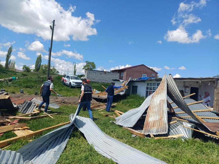 Kars'ta dün etkili olan fırtına sonrası Çevre, Şehircilik ve İklim Değişikliği İl Müdürlüğü ekipleri, hasar tespiti yaptı, 8 ev ve 3 ahırın çatısının uçtuğunu belirledi.