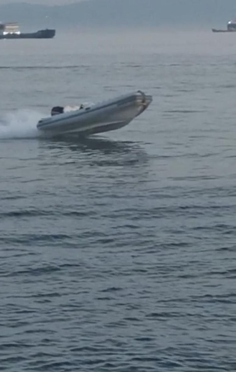 Öte yandan üzerindeki iki kişinin denize düşmesi sonrasında çalışır durumdaki botun kayalıklara çarpması çevredeki vatandaşlar tarafından cep telefonuyla saniye saniye kaydedildi.