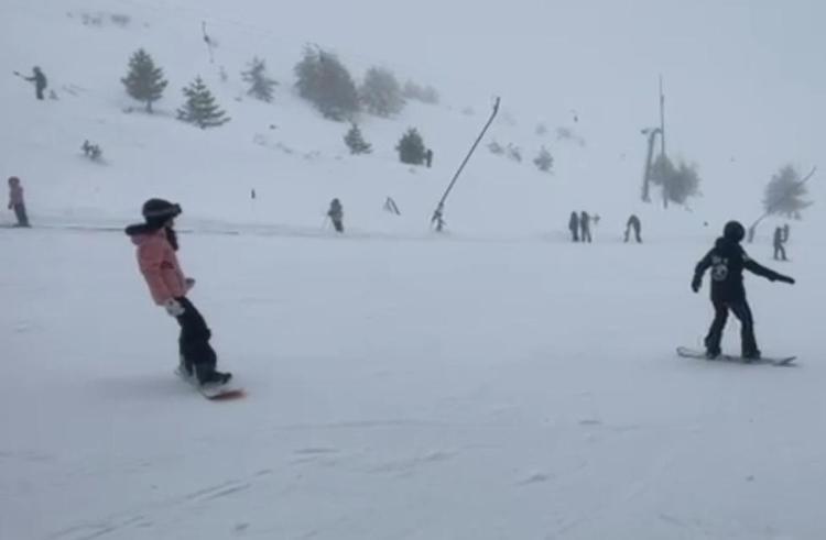 Tatilciler, farklı eğimdeki çok sayıda pistin bulunduğu kayak merkezinde kayak ve snowboard yaptı. Kayak merkezinde kar kalınlığı 2 metre 20 santim olarak ölçüldü.