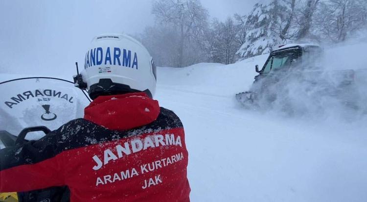 Kocaeli’de Samanlı Dağları’nın 1640 rakımlı zirvesinde bulunan önemli kış turizm merkezi Kartepe’de, Jandarma Arama Kurtarma (JAK) timi, 5 kar motoru ve UTV ile mahsur kalanları kurtarmak için günün 24 saati görev yapıyor. Tatilci yoğunluğunun yaşandığı hafta sonlarında ortalama 60 olaya müdahale eden JAK timinin, nefes kesen tatbikatı DHA tarafından görüntülendi.
