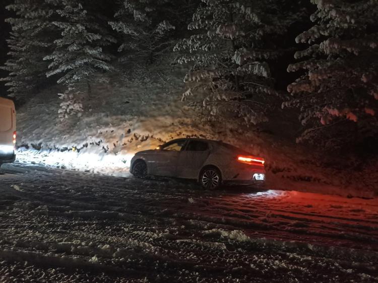 Yağış nedeniyle bazı sürücüler yolda ilerlemekte güçlük çekerken, araçların kaydığı ve yolda kaldığı görüldü.