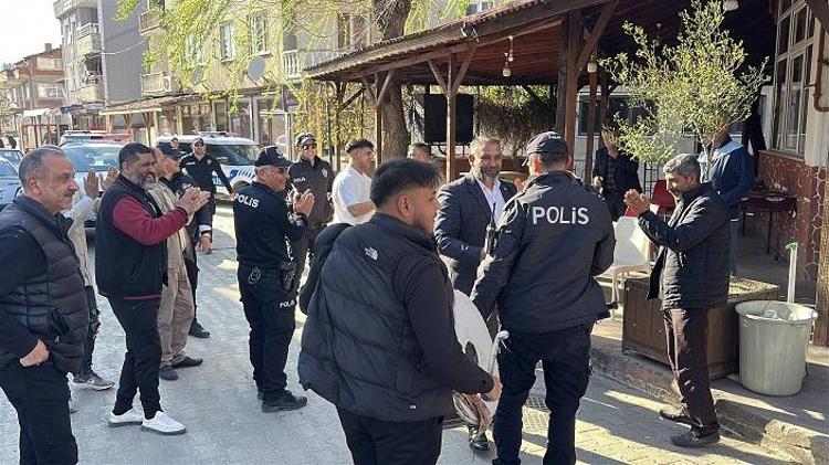 Kavga ihbarına giden polisler Türk bayrağı ve çiçeklerle karşılandı