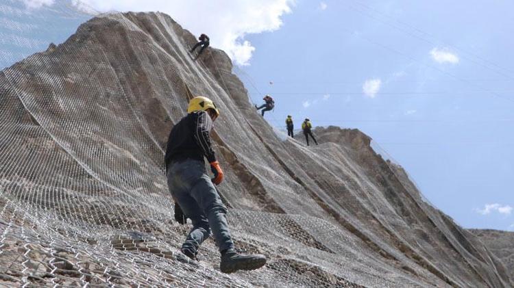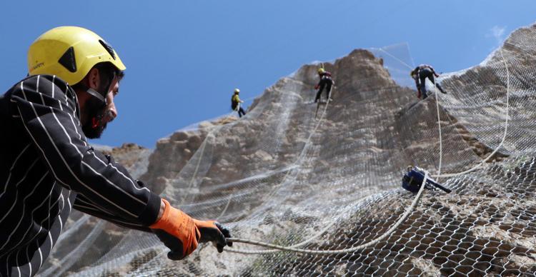 Kaya düşen dağları çelikle örüyorlar
