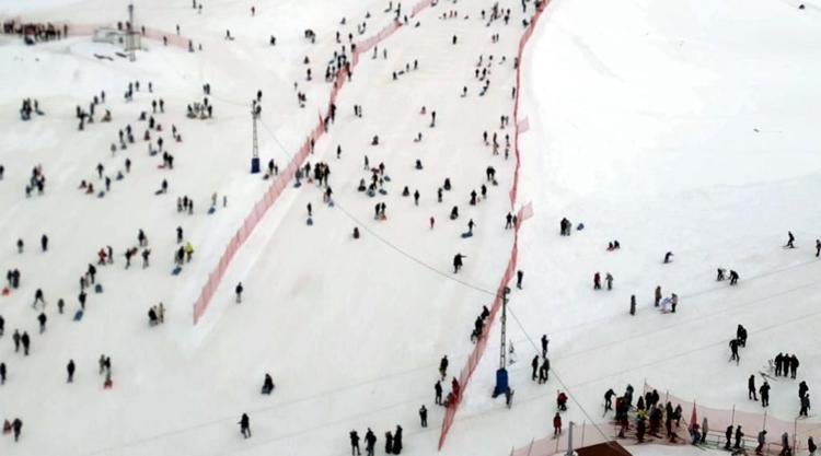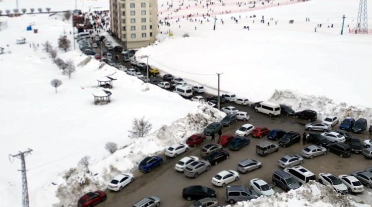 Kayak merkezinde bu kez hafta içi yoğunluğu dron kamerasında