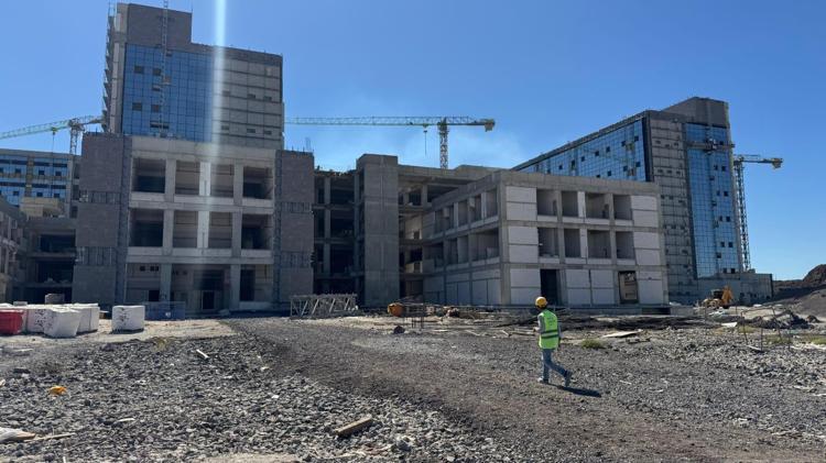 Diyarbakır’da bölgenin en büyük sağlık yatırımlarından biri olan Kayapınar Şehir Hastanesi’nin yüzde 58’lik kısmı tamamlandı. Hastane ile ilgili açıklamalarda bulunan İl Sağlık Müdürü Uzm. Dr. Emre Asiltürk, “Yılda yaklaşık 3,5 milyon hastanın tedavi görebileceği bu tesis, kamunun yoğun bakım kapasitesini yüzde 50 artıracak. 38 tam donanımlı ameliyathane, 5 anjiyo laboratuvarı, 3 MR, 3 BT ve 20 ultrason cihazı gibi ileri teknolojiye sahip donanımlar yer alacak” dedi.
