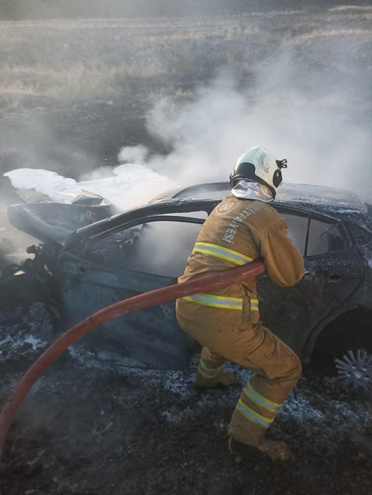 Kayaya çarpıp alev alan otomobilin sürücüsü öldü