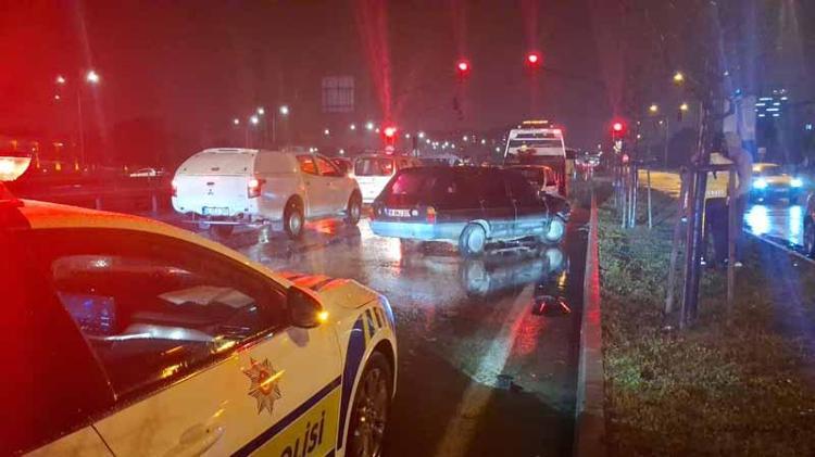 İddiaya göre, cadde üzerinde seyir halinde olan Tuncay Y. yönetimindeki 16 ANJ 207 plakalı otomobil, yağış nedeniyle kayganlaşan yolda duramayıp, o sırada kırmızı ışıkta yavaşlayan önündeki Emre C. idaresinde olan 34 AUZ 64 plakalı otomobile çarptı.
