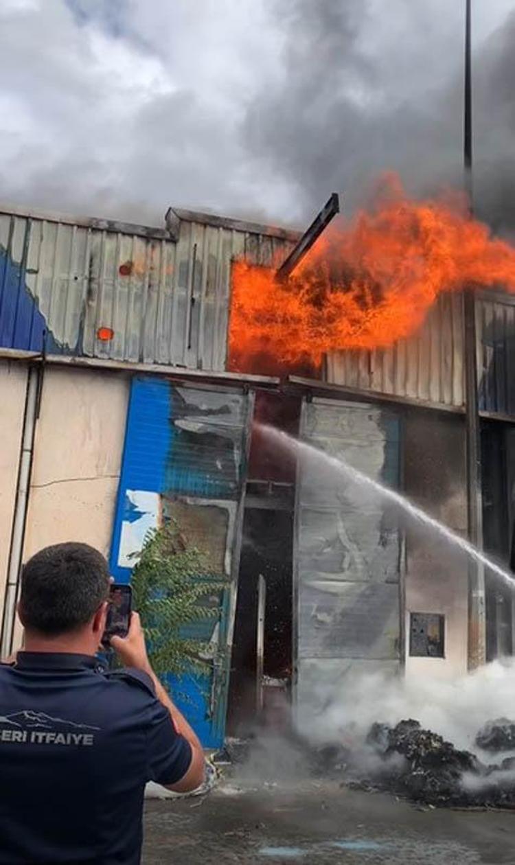 Kocasinan ilçesi Demirciler Sitesi 3107'nci Sokak'taki bir iş yerinde, saat 15.30 sıralarında yangın çıktı. Tekstil atıklarının tutuşması ile büyüyen alevler, kısa sürede iş yerini kapladı.